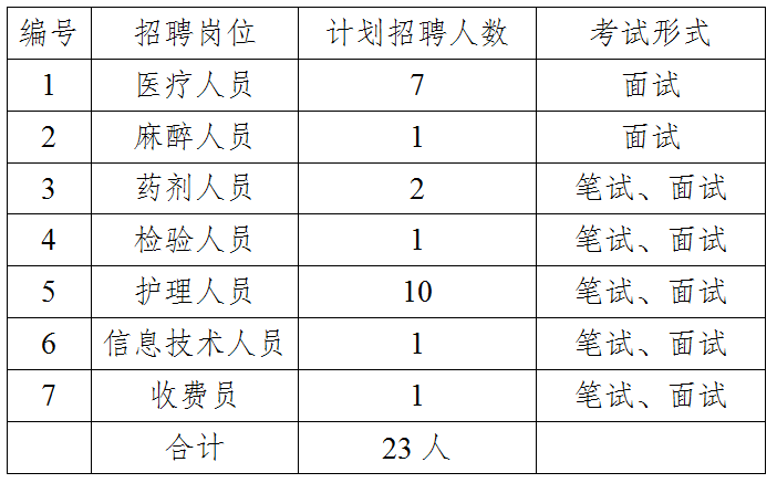 医院决定增加药剂岗位、检验岗位、信息技术岗位、收费岗位笔试环节,其他岗位考试形式不变,具体考试形式如下表。