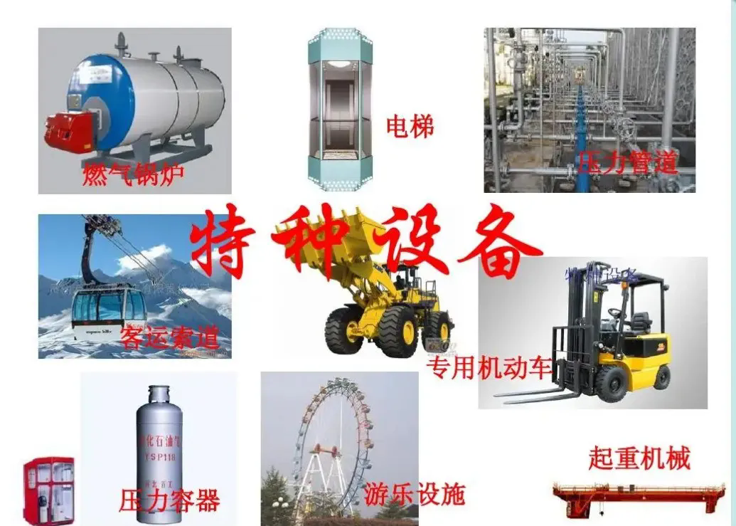 特种设备是指涉及生命安全、危险性较大的锅炉、压力容器(含气瓶,下同)、压力管道、电梯、起重机械、客运索道、大型游乐设施和场(厂)内专用机动车辆。