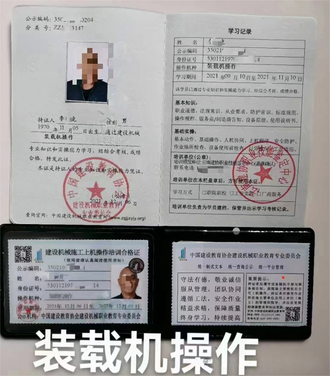 颁发证书种类:建设机械施工作业证(装载机操作证)