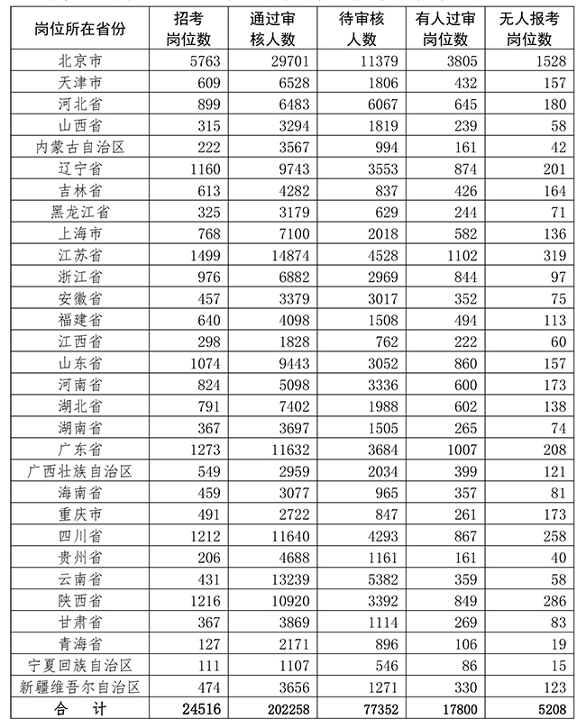 1.截至7月7日17时各省份岗位报考情况统计表