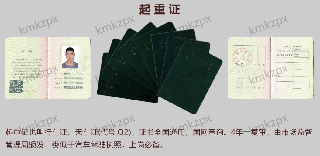 Q2(限塔式起重机)证,证书由市场监督管理局颁发,证书国网可查,全国通用,四年一审。我校Q2(限塔式起重机)每周安排考试,考完两周左右拿证,证书在国家市场监督管理局总局政务服务平台查询(网址:http://cnse.samr.gov.cn)