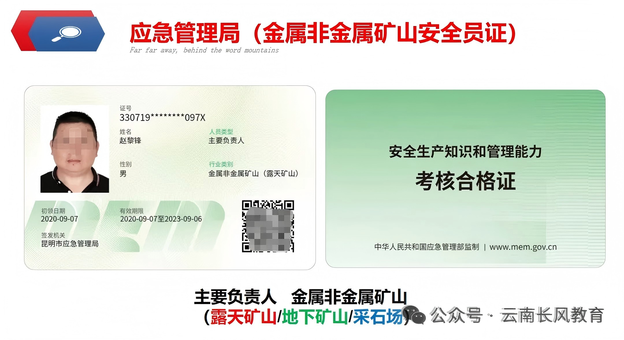 金属非金属矿山安全生产知识和管理能力考核合格证证书样本如下: