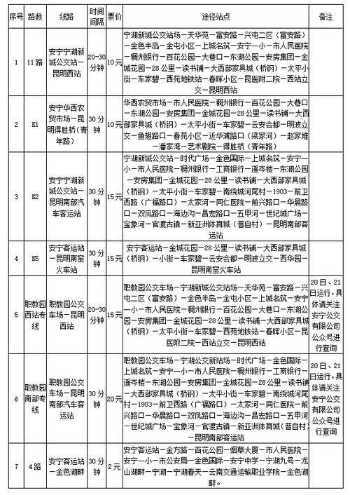安宁考区2022年5月20日-21日公交线路明细表