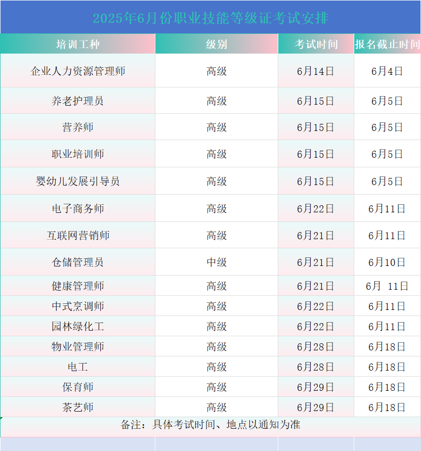 企业人力资源管理师、创业指导师、茶艺师、评茶员、公共营养师、养老护理员、保育师、婴幼儿发展引导员、健康管理师、中/西式烹调师、中西式面点师、劳动关系协调员、电工、电子商务师、互联网营销师、物业管理师、(粮油)仓储管理员 报名咨询王老师:18788497584
