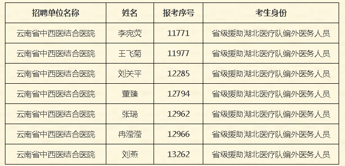 云南省卫生健康委所属医疗卫生机构面向新冠肺炎疫情防控一线医务人员定向招聘报名资格审核通过人员名单