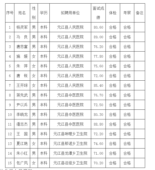 2020年元江县卫健系统提前招聘医务人员拟聘用人员公示